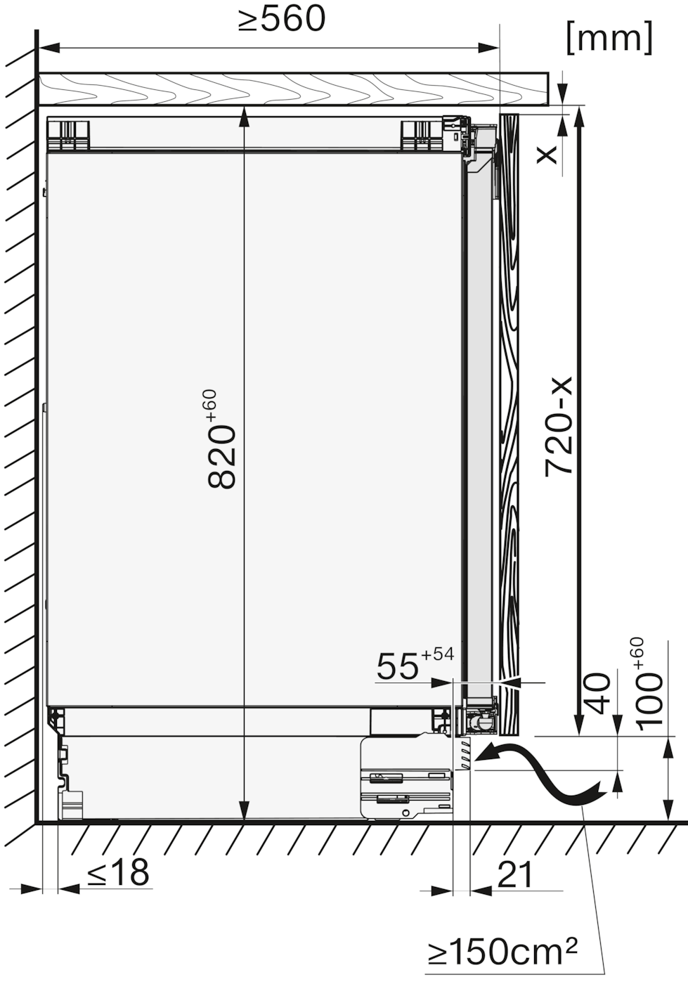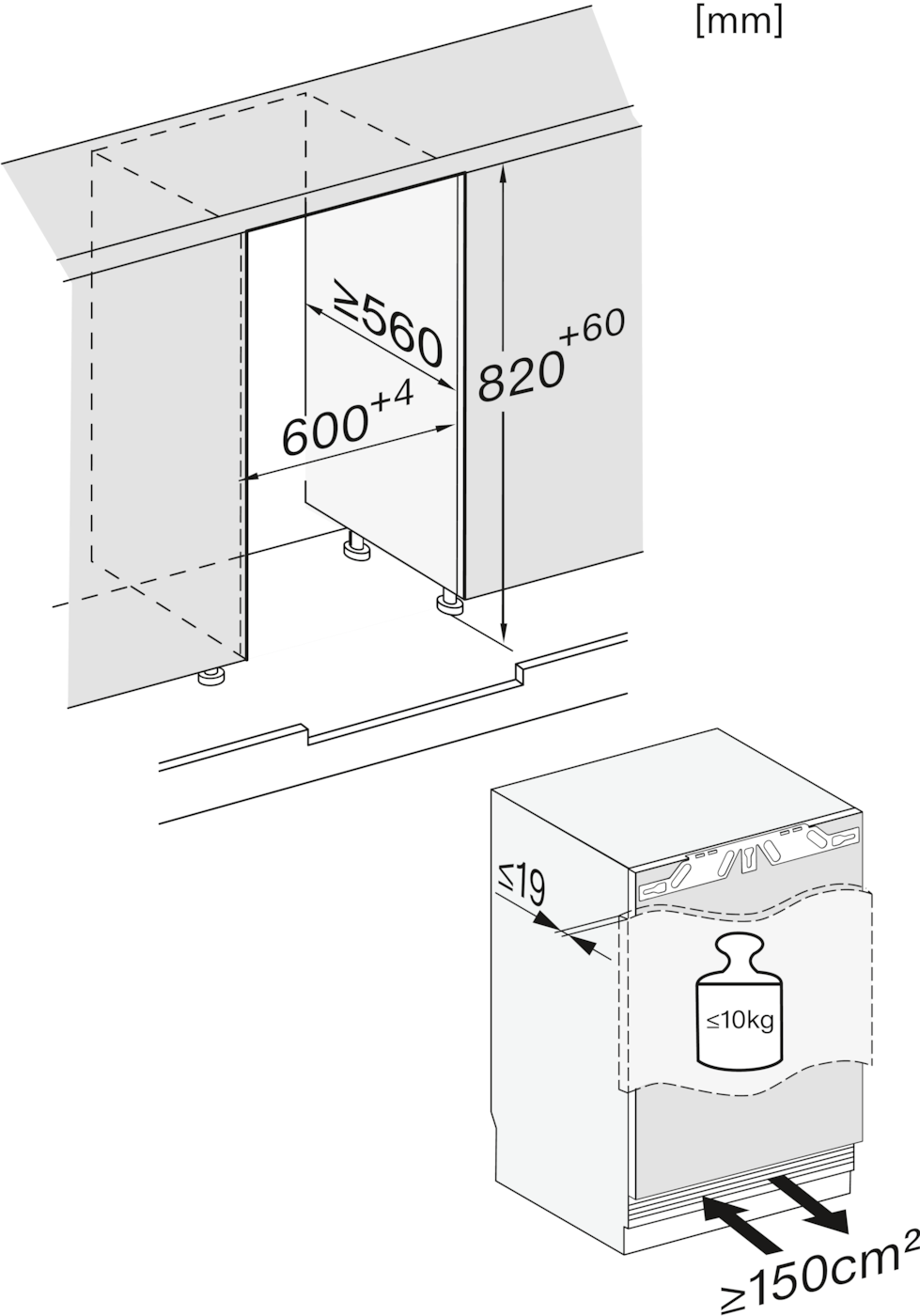 KU7016D, KU7015D, KU7035D, KU7135C, FNUS7140C, Built-under, installation drawing (*footnote)
