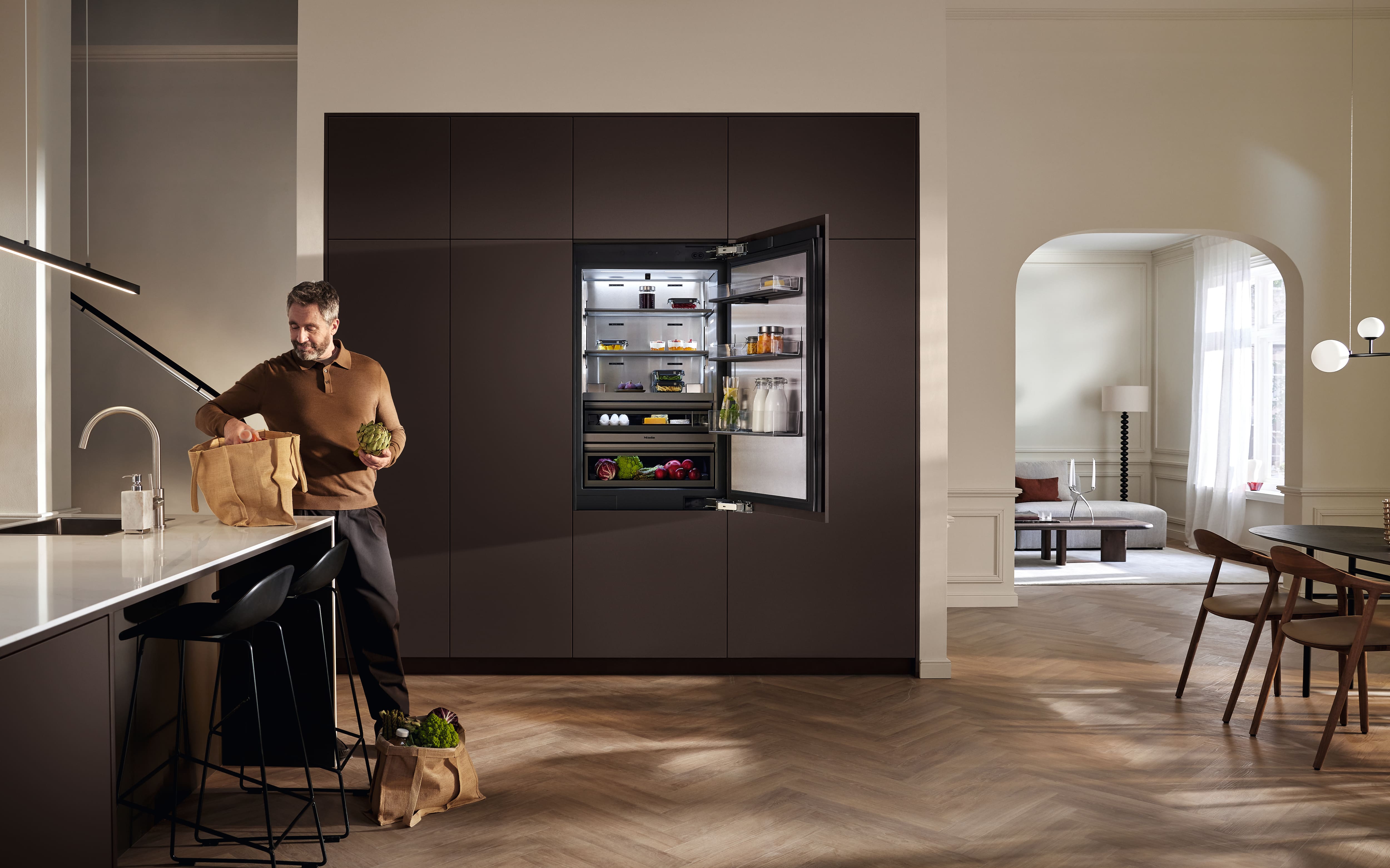 Miele MasterCool cihazınızın çekmeceleri yiyeceklerinizin saklanması için mükemmel ortamı sunar. - Kötü kokmayan taze malzemeler – Longlife AirClean Sistemi