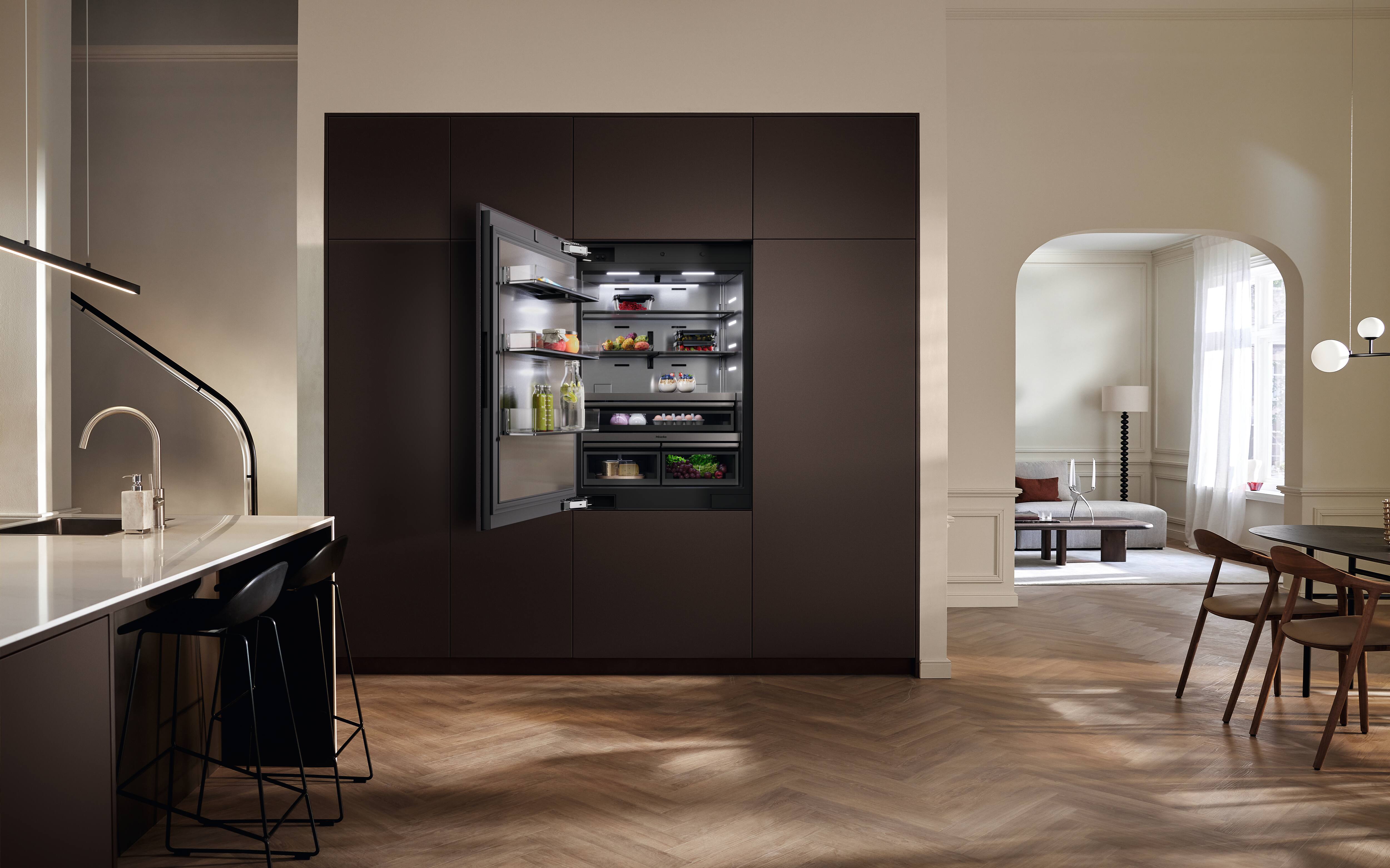 Miele MasterCool cihazınızın çekmeceleri yiyeceklerinizin saklanması için mükemmel ortamı sunar. - Kötü kokmayan taze malzemeler – Longlife AirClean Sistemi